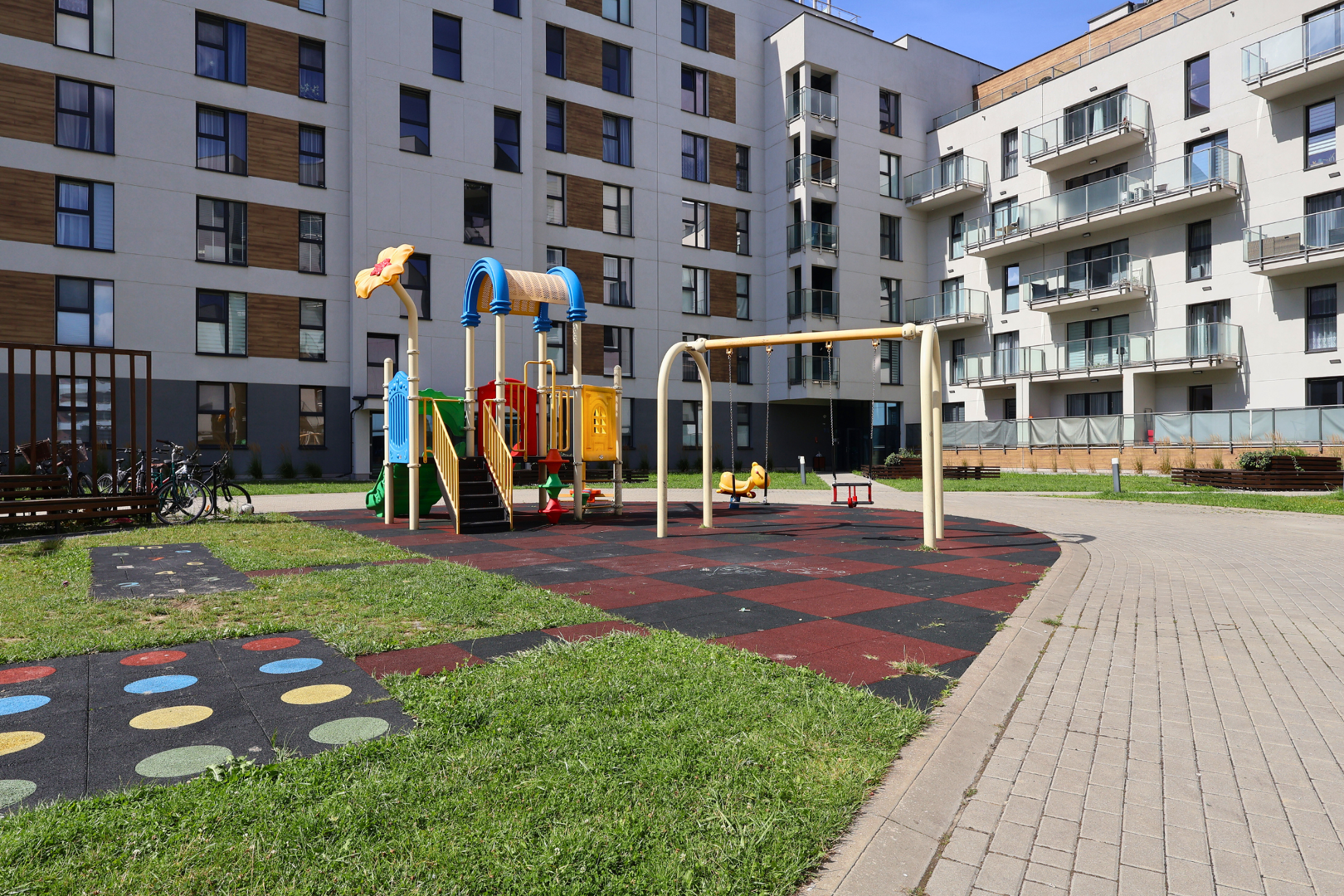 Przestronny apartament o powierzchni 56 m², znajdujący się na parterze nowoczesnego budynku. Oferuje dwie komfortowe sypialnie, łazienkę, w pełni wyposażoną kuchnię oraz przestronny balkon, z którego roztacza się widok na kameralne osiedle.